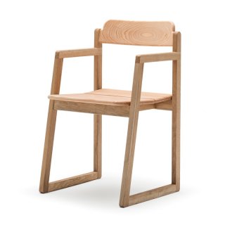 フレームは代々続く椎茸栽培農家が守る森で、 太くなりすぎて椎茸づくりには適さなくなってしまったクヌギの木を、 背と座にはヒノキの集成材を使いました。